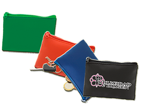 Con cierre de cremallera a juego y anilla llavero interior.